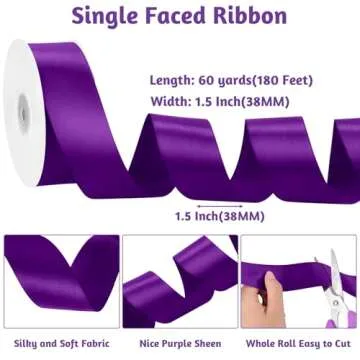 Show moreDiscover the charm of our Purple Ribbon 1 1/2 Inch 60 Yards, an essential addition to your crafting and gift-wrapping toolkit. Made from high-quality polyester fabric, this satin ribbon features a smooth, shiny surface that is remarkably soft and durable. Its design is resistant to wrinkling, shrinking, and fading, ensuring that your creations look stunning and remain vibrant over time. Whether you're dressing up a gift for a loved one or working on a craft project, this purple ribbon is the perfect choice for any occasion.