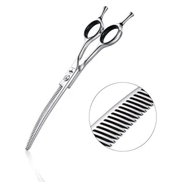 Show moreIntroducing the highly sought-after PURPLEBIRD 6.5 Inch Downward Curved Dog Grooming Scissors, expertly crafted from premium Japanese 440C stainless steel. These remarkable thinning shears not only feature a sleek design but also boast 45 precision ground teeth that enable a thinning rate of 20-25%, making them ideal for achieving that immaculate, natural look for your furry friends. With hand-sharpened cutting edges and a convex edge, these shears ensure smooth trimming without any pulling or snagging, providing your pets with the gentle grooming they deserve.