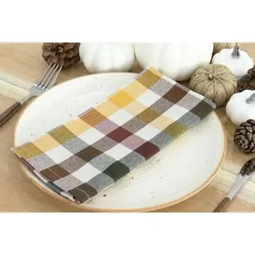 PurpleEssences Buffalo Plaid Cloth Napkins - Mitered Corners - Fall Thanksgiving Gingham Check Dinner Napkin - Set of 12-100% Cotton - 18x18 Inch - Reusable Washable - Harvest