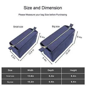 Purse Organizer Insert for Handbags, 3mm Felt Bag Organizer for Tote, Metal Zipper Cover is Removeable Purse Organizer Insert, Handbag Organizer Insert Best Fit Book Tote Bag (Navy Blue, Large)