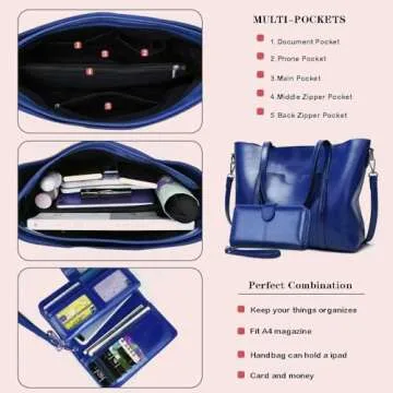 Show moreIntroducing the ultimate accessory for style-savvy women: our Purses and Handbags for Women Large Shoulder Tote Satchel Purse! This gorgeous handbag features a vibrant blue color, making it a chic and versatile choice for any outfit. Crafted from premium quality PU leather with a soft polyester lining, it not only looks fashionable but is also built to last. Whether you're headed to work, out for dinner, or simply running errands, this tote offers perfect functionality with its spacious design.