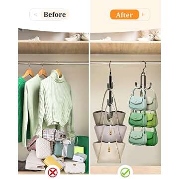 Transforming your closet with this organizer doesn’t just keep your space tidy; it brings a sense of calm and order to your daily routine. Imagine the relief and pride of seeing your bags beautifully displayed, each one ready to complement your outfit perfectly. Embrace the joy of finding your cherished handbags without digging through clutter, and let organization elevate your style and quality of life!