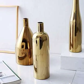 Purzest Gift for Her,Decor Vases Set,Gold Metallic Vase, Set of 3,Lover Gift