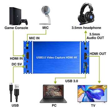 PUTELTAL 4K HDMI to USB 3.0 Video Capture Card Dongle 1080P Full HD Video Recorder for OBS Gaming Live Streaming HD Capture Box for PS3 PS4 Xbox Wii U & More