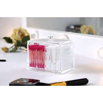 Measuring at 5.6 inch (L) x 4.6 inch (H) x 4.6 inch (W), this compact yet spacious organizer can hold over 100 cotton pads and 60 to 70 Q-tips, proving to be efficient for your daily needs. Designed with user convenience in mind, the cotton pad holder allows you to access your items easily without the hassle of opening a lid, showcasing an intuitive design that caters to your fast-paced lifestyle.