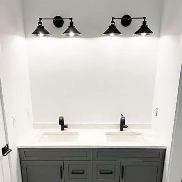 PUUPA 2 Lights Bathroom Vanity Light Fixture, Industrial Pipe Vintage Matte Black Metal Shade Farmhouse Wall Sconces Lighting