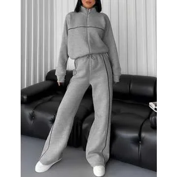 PUWEI Women 2 Piece Tracksuit Fall Outfits Long Sleeve Zip Up Sweatshirt Jogger Pants Lounge Sweatsuit Sets