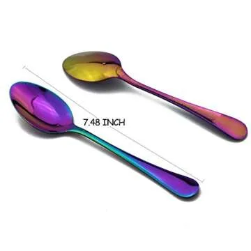 PUZHLER Iridescent Rainbow color Mirror Polished Stainless Steel Coffee Spoon Dessert Spoons,Soup Spoons,7.48 inch, Cake Spoon Set of 8 Pieces