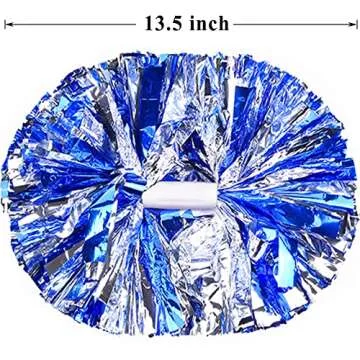 PUZINE 4 Pack Cheerleading Pom Poms,Metallic Cheer Pom Poms with Training Baton Handle for Team Sport Spirit Squad Bulk Cheerleaders(Blue and Silver)