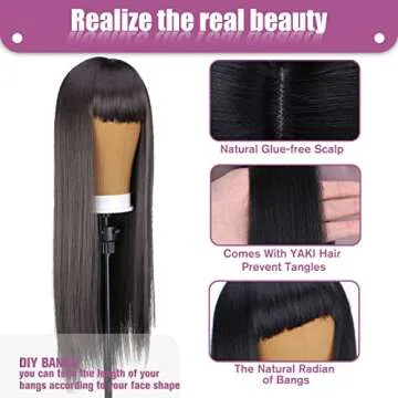 Show more Introducing the PWEOUKE Natural Brown Straight Wig With Bangs, a stunning 26-inch synthetic full wig designed for those who desire versatility and elegance in their daily hairstyle. Crafted from 100% high-quality, high-temperature resistant synthetic fiber, this wig not only offers a realistic look but also provides incredible softness and breathability. Say goodbye to tangles and discomfort; this premium wig is skin-friendly and durable, allowing you to shine for any occasion without the worry of wear and tear.