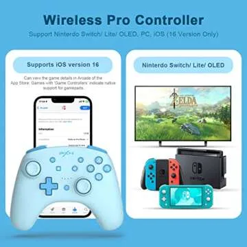 PXN 9607 Wireless Switch Controller for Switch/Switch Lite/OLED, Support iOS Switch Pro Controller with Turbo, Wake-up, NFC, Motion, Vibration Wireless Switch Controller - Cyan