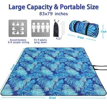 PY SUPER MODE Picnic Blankets Extra Large, Waterproof Foldable Outdoor Beach Blanket Oversized 83x79” Sandproof, 3-Layer Picnic Mat for Camping, Hiking, Travel, Park, Concerts(Blue Leaves)