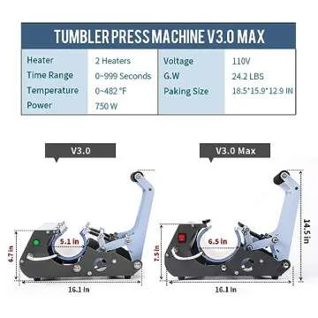 Show more The PYD Life 2 IN 1 Tumbler Heat Press Machine is your ultimate companion for creating stunning sublimation tumblers, mugs, and more! With a sleek design and a powerful 750W heating element, this versatile machine makes DIY crafting easier than ever. Boasting a temperature range from 0 to 400°F and a time range of 0-999 seconds, you can efficiently customize your tumblers to perfection. The kit comes with two heat press attachments, a 40 oz tumbler heater for larger items and a 30 oz attachment perfect for a variety of mug sizes.