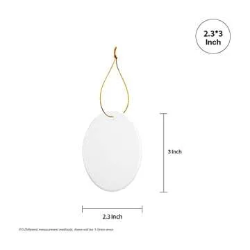 PYD Life 25 PCS Sublimation Blank Ornaments White Ceramic 3 Inch Oval with Gold String for Home Christmas DIY Crafting Personalized Decor Bulk