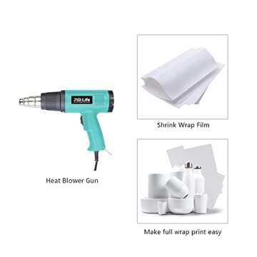 Show more The PYD Life Heat Blower Gun in a stunning mint green color is your new best friend for all sublimation projects! This powerful 1800 W, 110 V heat gun is ingeniously designed to deliver quick and efficient heat, transforming your sublimation printing experience into a breeze. It's equipped with two temperature settings ranging from 125℉ to 925℉ (50℃ to 500℃), allowing you to tailor the heat to your specific needs, making it the perfect companion for sublimation shrink wraps and film.