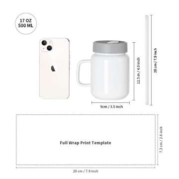 Show moreIntroduce a touch of creativity and personality to your drinkware collection with the PYD Life Sublimation Blanks Mason Jar Ceramic. These beautifully crafted white ceramic mason jars are designed specifically for sublimation, ensuring your custom prints shine brightly and vividly without losing quality. Each 17 oz (500 ml) tumbler is perfect for sipping your favorite beverages, whether it's refreshing iced tea, morning coffee, or delicious smoothies. The supplied gray silicone lid not only adds an elegant look but also enhances functionality by keeping your drinks secure, making spills a thing of the past. With a clear glass straw included, enjoy a comfortable drinking experience while showcasing your unique designs. Whether you are looking to personalize drinkware for yourself or as a thoughtful gift for someone special, this product offers endless potential to express creativity.