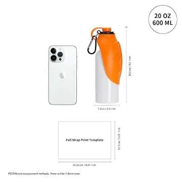 PYD Life Sublimation Dogs Pets Water Bottle 20 OZ White with Silicone Lid and Carabiner Stainless Steel Single Wall Water Bottles for Tumbler Heat Press Sublimation Oven Printing (Orange Lids)