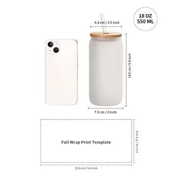PYD Life Sublimation Glass Blanks Cans Frosted Tumblers 18 OZ with Bamboo Lid and Plastic Straw Beer Cans Cups for Tumbler Heat Press 6 Pack