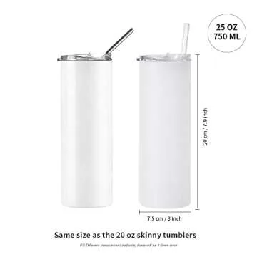 PYD Life Sublimation Glass Blanks Skinny Tumblers Frosted 25 OZ Straight Iced Coffee Cups with Lid and Glass Straw for Tumbler Heat Press Sublimation Printing 6 Pack