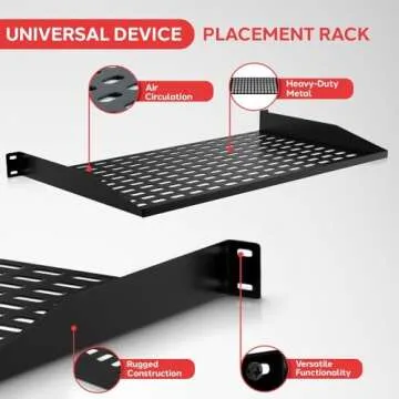 Pyle 19-Inch 1U Server, Vented Shelves for Good Air Circulation Cantilever Wall Rack, Universal Device, Cabinet Shelf, Computer Case Mounting Tray, Black (PLRSTN14U)