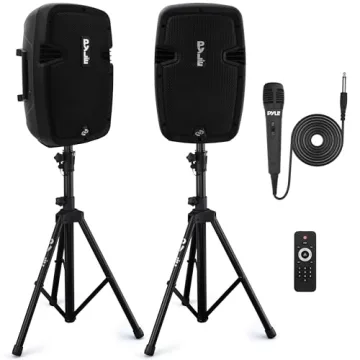 Pyle Powered PA Speaker System – Bluetooth Loudspeakers with Stands and Microphone Kit