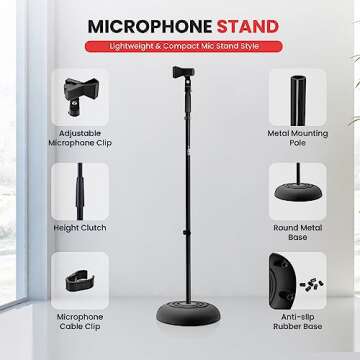 PYLE-PRO Microphone Stand - Universal Mic Mount with Heavy Compact Base, Height Adjustable (2.8’ - 5’ ft.) - PMKS5