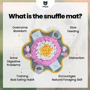 When comparing the PYOGO Snuffle Mat to other pet enrichment products, it stands apart due to its unique multi-shape design that presents a variety of challenges, unlike the standard flat mats offered elsewhere. Many competitors lack the thoughtful design features such as slow feeding capabilities and easy-to-clean materials. This mat combines durability, practical use, and affordability, making it a superior choice for both dogs and their owners.