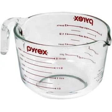 Ideal for both seasoned chefs and aspiring home cooks, it's perfect for measuring large amounts of liquids and can even double as a mixing bowl! From pancake batter to hummingbird feed, its 8-cup capacity ensures you have what you need at your fingertips. Once you try Pyrex, you'll understand why generations have trusted its quality. Make this measuring cup a staple of your kitchen and treasure it for a lifetime!