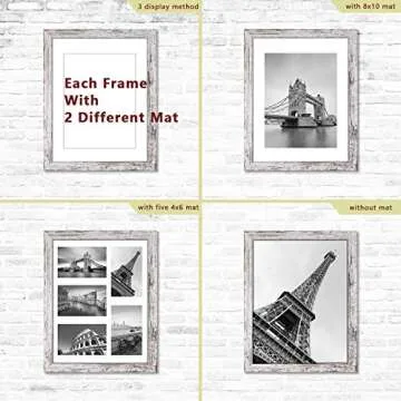 Show moreElevate your home decor with the exquisite Q.Hou 11x14 Picture Frame Set, where functionality meets rustic elegance. These frames, made from high-quality MDF wood and finished in a charming distressed white, are designed to complement any decor style, encapsulating the essence of farmhouse chic. Each set includes two frames, meticulously crafted to accommodate an 11x14 photo or an 8x10 photo matted with the included mats. You can also display up to five 4x6 photos, allowing for versatile and creative photo arrangements that showcase your most cherished memories.