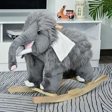 Qaba Kids Ride-On Rocking Horse Toy Mammoth Style Rocker with Fun Music & Soft Plush Fabric for Children 3+ Years