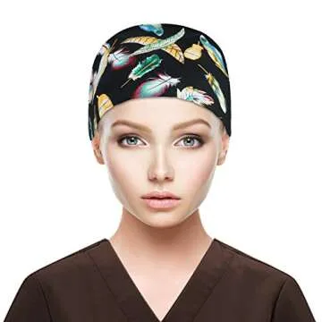 QBA Working Cap with Button Long Hair, Adjustable Working Hat Ponytail Holder, Tie Back Hats for Women & Men, One Size (Feather Black)
