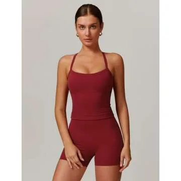 QBGJTD Two Piece Workout Sets For Women Straps Cross Back Tank Top Matching High Waist Booty Lifting Biker Shorts 2 Piece Gym Yoga Active Wear Outfits Womens Athletic Work Out Clothes Burgundy S