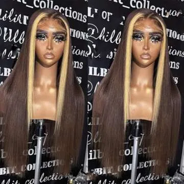 QD-Tizer Brown Hair Color Lace Front Wig Long Straight Hair Wigs Honey Blonde Face Framing Highlights Heat Resistant Synthetic Lace Front Wigs for Fashion Women