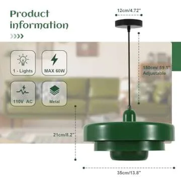Qepeety Nordic Pendant Light, Mid Century Modern Pendant Light Fixtures, 3-Layer Design, 13.8 inch Green Metal Shade, Green Chandelier Ceiling Light for Living Room, Hallway, 1-Light