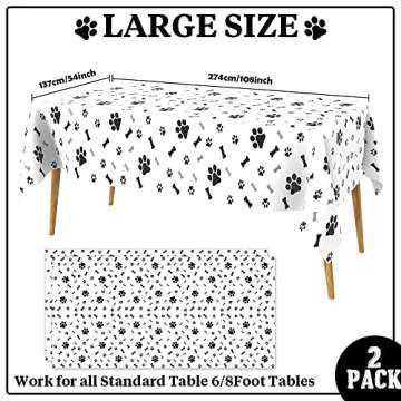 Show moreTransform your next gathering into a whimsical celebration with our QEYMN Puppy Paw Print Plastic Tablecloths. Designed specifically for dog lovers and cheerful birthdays, these playful table covers showcase an adorable array of paws and bones, adding a delightful touch to any celebration. Each pack includes 2 durable and spacious tablecloths, measuring an impressive 54x108 inches. Perfectly sized to accommodate up to 10 guests, these tablecloths are ideal for your child's puppy-themed birthday party or any pet-loving celebration!