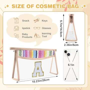 QFDS Boho Straw Clear Makeup Bag,Small Cute Chenille Letter Bag With Zipper,Waterproof Travel Toiletry Bag,Portable Sunscreen Cosmetic Bag,Clear Snack Bag at Disney World for Women Girls (A)