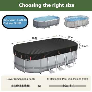 Show more Introducing the QH.HOME 2025 Upgraded Ultimate Windproof Oval Pool Cover — your ultimate solution for an effortlessly clean pool this summer. Measuring a generous 10x16 ft, this cover is meticulously designed to accommodate above-ground pools while boasting a range of features aimed at enhancing usability and durability. Crafted from upgraded 500D Oxford fabric, it ensures tear resistance, longevity, and better design than traditional pool covers. This is not just any pool cover—it's a blend of innovation and practicality that's tailored to meet your needs, safeguarding your pool water with advanced technology.
