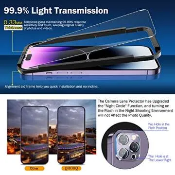 QHOHQ 3 Pack Screen Protector for iPhone 14 Pro Max 6.7 Inch with 3 Pack Tempered Glass Camera Lens Protector, Ultra HD, 9H Hardness, Scratch Resistant, Case Friendly