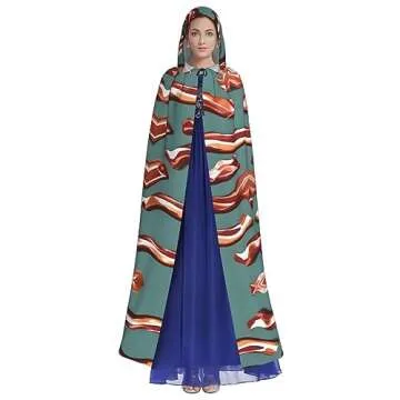 Why You Will Love This Product?You'll adore wearing this costume cape because it allows you to unleash your imagination and creativity. It’s not just a costume piece; it’s a canvas for your personality! With the attention-grabbing bacon print, this cloak sparks joy and laughter, making you the center of attention at any gathering. Whether you are completing a fantasy character or simply embracing your fun side, the QHWLR Streaky Bacon Pattern Cape promises to elevate your costume game to new heights!