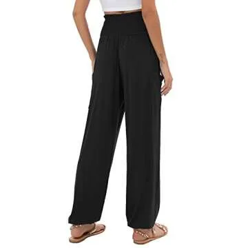 QIANXIZHAN Women's Harem Pants, High Waist Yoga Boho Trousers with Pockets Black M