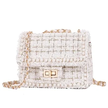 Qiayime Fashionable Tweed Pearl Handbag - Elegant Crossbody Clutch for Women