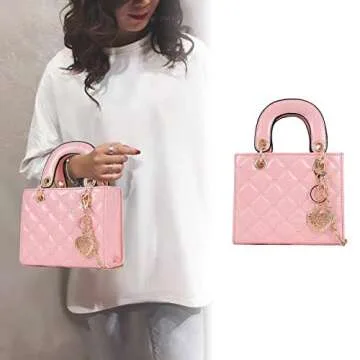 Qiayime Purses and quilted Handbags for Women Patent Leather Chain Satchel Shoulder Messenger Tote Bags Pink