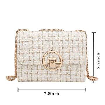Qiayime Women Small Shoulder Bag Crossbody Bag Fashion Ladies Chain Quilted Tweed Purse Evening Bag Clutch Handbag (White)