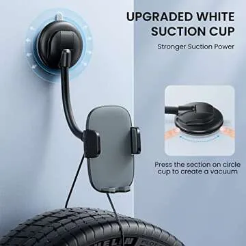 Qifutan Cell Phone Holder Long Arm Dashboard Windshield Car Phone Holder Anti-Shake Stabilizer Phone Car Holder Compatible with Phone Smartphone Grey