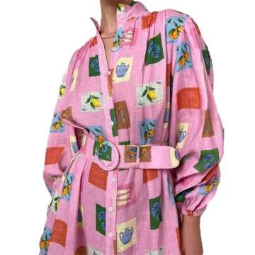 Qikaka Women's Long Sleeve Turtleneck Printed Bodycon Sexy Nightclub Party Belted Dress Pink