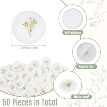Qilery Adhesive Wax Seal Stickers White Dry Floral Backing Envelope Seals Wedding for Wedding Invitations Bridal Shower Party Letter Envelope(50 Pcs,Baby's Breath)