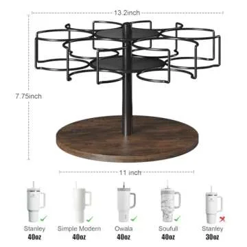 QimCoor Stanley 40 oz Cup Organizer and Storage, Rotating Tumbler Holder, Water Bottle Rack for Kitchen Organization, Easy to Access, Equipped with Non-Slip Pad (Black)