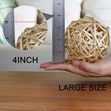 Qingbei Rina 4 Inch Wood Decorative Balls for Bowls, Extra Large Wicker Rattan Balls Decorative Orbs Vase Fillers for Centerpieces, Natural Home Wedding Decor(4 PCS)