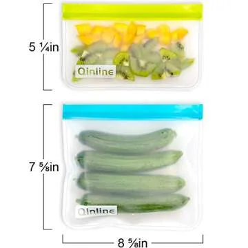 Show more The Qinline Reusable Storage Bags are the ultimate solution for eco-conscious individuals looking to reduce their carbon footprint while maintaining a stylish and functional kitchen. Made from food-grade PEVA material, these bags are not only non-toxic but also durable and easy to clean. Forget about one-time use plastic bags; with Qinline, you're making a sustainable choice that helps to preserve our planet. These bags are hand-wash friendly, and their design allows for easy drying by propping them over a mug or cup. Pick a color that suits your style and simplify your storage needs!