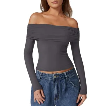 Show moreIntroducing the QINSEN Cropped Long Sleeve Top: A perfect blend of elegance and comfort, this shirt is poised to elevate your wardrobe to new heights. Crafted from a remarkable new fabric that boasts exceptional tensile strength and high elasticity, this cropped fitted top ensures a flattering silhouette while providing unparalleled comfort. Its luxurious buttery softness makes it an ideal choice for all-day wear, whether you’re lounging at home or stepping out for a night on the town. Enhanced by a chic folded off-shoulder design, this top elegantly frames your shoulders and collarbones, making it a stylish statement piece in any fashionista’s collection. Plus, with high color fastness, you can trust that this shirt will maintain its vibrancy wash after wash, resistant even to sheer transparency in lighter shades.